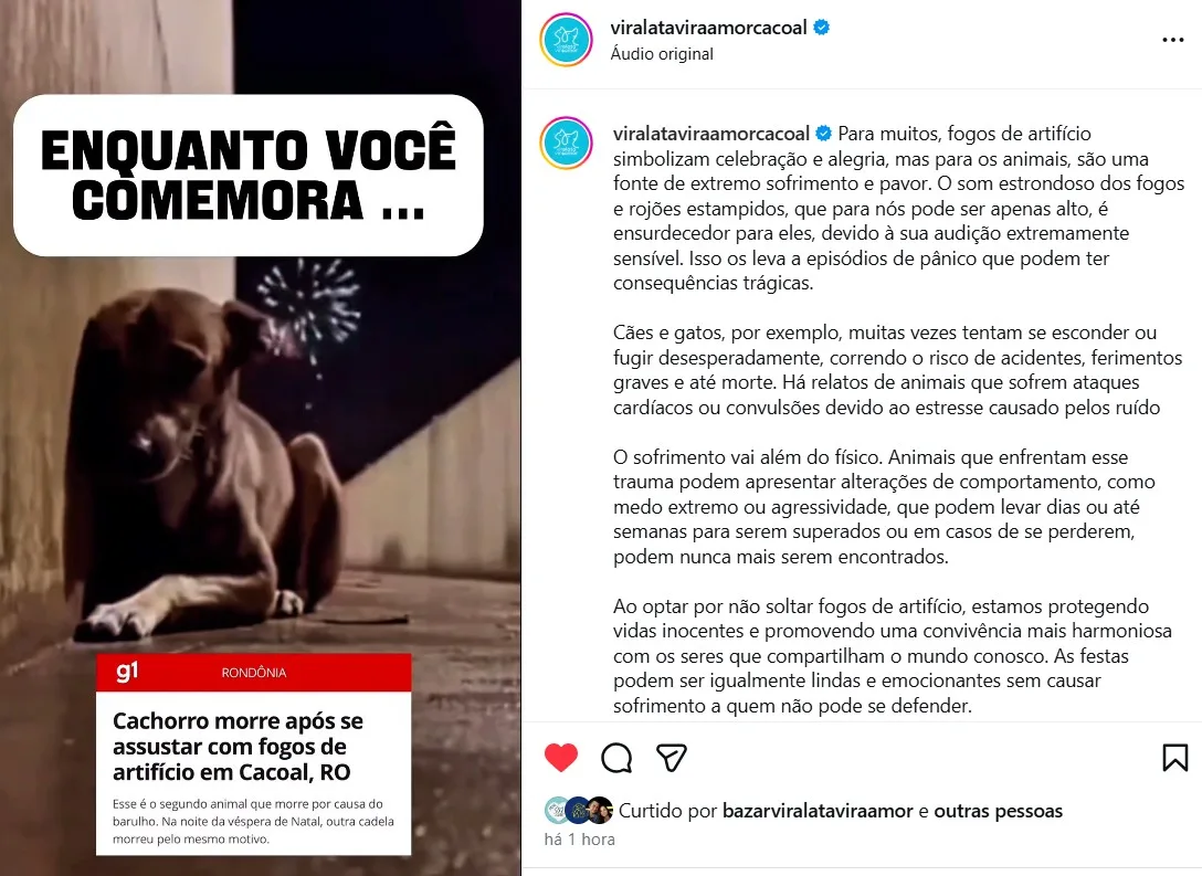 Cacoal, Pimenta e Região​Fogos de artifício representam risco crescente para animais, alerta ONG Vira Lata...