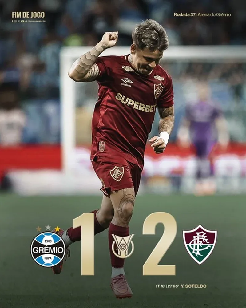 No duelo entre tricolores em Porto Alegre, o Fluminense contou com dois gols do venezuelano Soteldo para derrotar o Grêmio por 2 a 1, André descontou para a equipe da casa. Para a equipe das Laranjeiras o triunfo é de grande importância para ficar vivo na luta por uma vaga direta para a próxima edição da Libertadores (Edição: Fábio Lisboa).