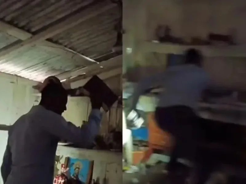 Um centro de Umbanda invadido e destruído por um homem, identificado como pastor evangélico.