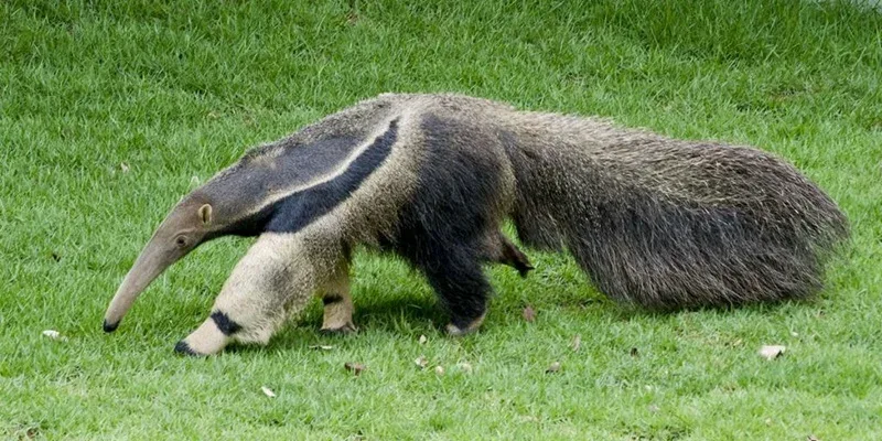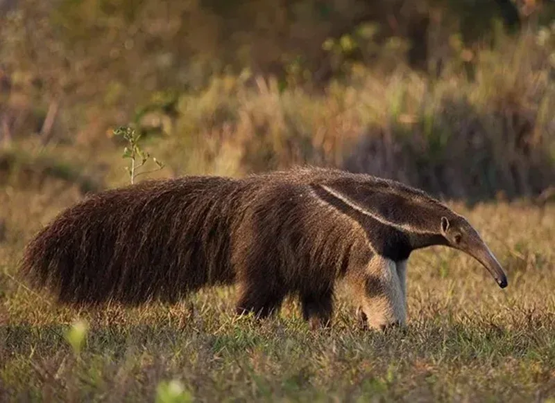 Um tamanduá-bandeira fazendo sua própria caminhada matinal, como se fosse só mais um morador tentando cumprir a meta de 10 mil passos.