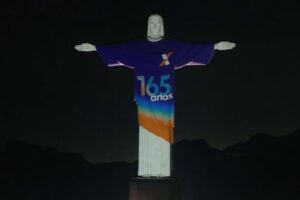 O Cristo Redentor iluminou o Rio de Janeiro com as cores da Caixa Econômica Federal em homenagem aos 165 da instituição. A projeção, feita na noite de segunda-feira (12/1), faz parte das ações de comemoração ao aniversário do banco.