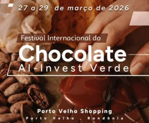 O Festival Internacional de Chocolate – AL-INVEST Verde será realizado entre os dias 27 e 29 de março, no Porto Velho Shopping, localizado na Avenida Prefeito Chiquilito Erse, nº 3288, bairro Flodoaldo Pontes Pinto, em Porto Velho, como parte da programação de encerramento do Projeto Cacau Sustentável, desenvolvido pelo Sebrae em Rondônia em parceria com o programa europeu AL-INVEST Verde.