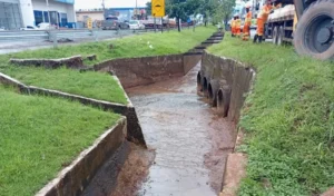 Os trabalhos foram iniciados no dia 23 de janeiro e já foram concluídos, contemplando serviços de limpeza e desobstrução das drenagens, que antes estavam completamente obstruídas. Com a intervenção, o canal voltou a operar de forma adequada, permitindo o correto escoamento da água da chuva.