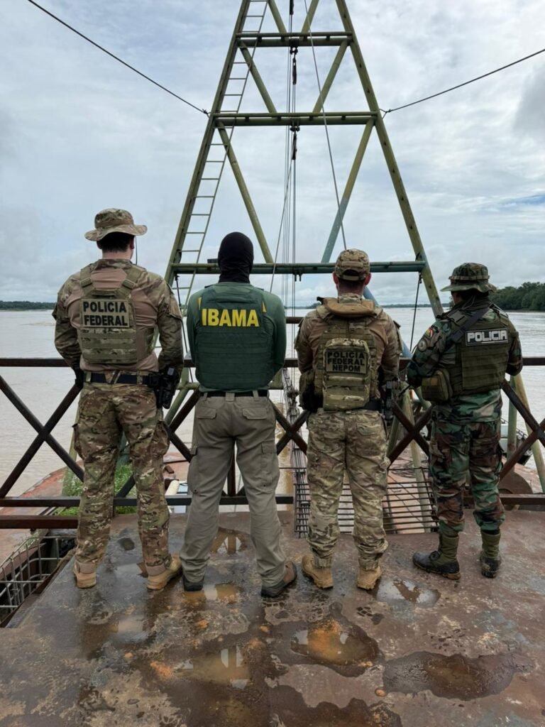 A Polícia Federal, em parceria com a Polícia Nacional da Bolívia e em coordenação com o Centro de Cooperação Policial Internacional da Amazônia (CCPI), deflagrou, nesta segunda-feira (12/1), a Operação Ouro na Fronteira, para combater o garimpo ilegal de ouro na região entre Brasil e Bolívia. A ação contou com o apoio da Polícia Militar de Rondônia, do Instituto Brasileiro do Meio Ambiente e dos Recursos Naturais Renováveis (Ibama) e da Secretaria de Estado do Desenvolvimento Ambiental de Rondônia, totalizando o emprego de seis embarcações e mais de 50 cinquenta policiais, brasileiros e bolivianos. As diligências ocorreram nos rios Mamoré e Madeira, no Brasil, e Madre de Dios, na Bolívia. No lado brasileiro, três dragas que operavam de forma clandestina foram inutilizadas. Também foram apreendidos frascos contendo mercúrio, metal altamente poluente, cujo uso em atividades garimpeiras causa severos impactos ambientais e riscos à saúde humana. Durante a ação, uma pessoa foi presa em flagrante por posse ilegal de arma de fogo. As investigações prosseguem para identificar financiadores, operadores e demais responsáveis pela atividade ilícita.