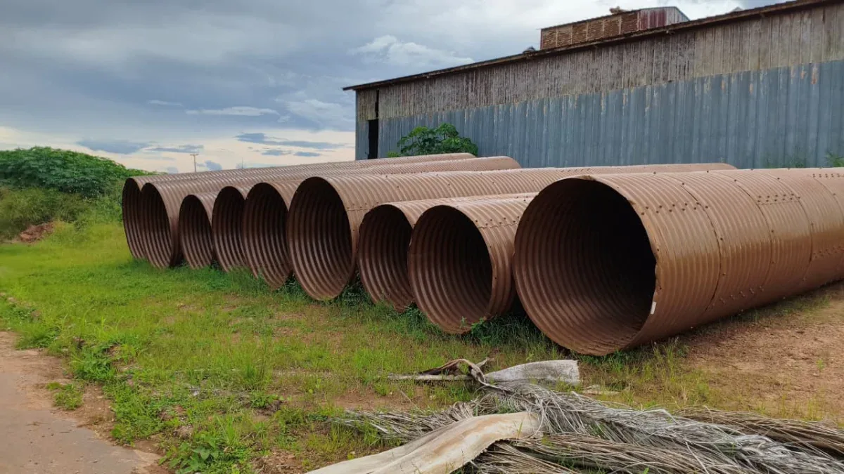 Os tubos já foram montados, aguardando o fim do período de chuvas para a instalação.