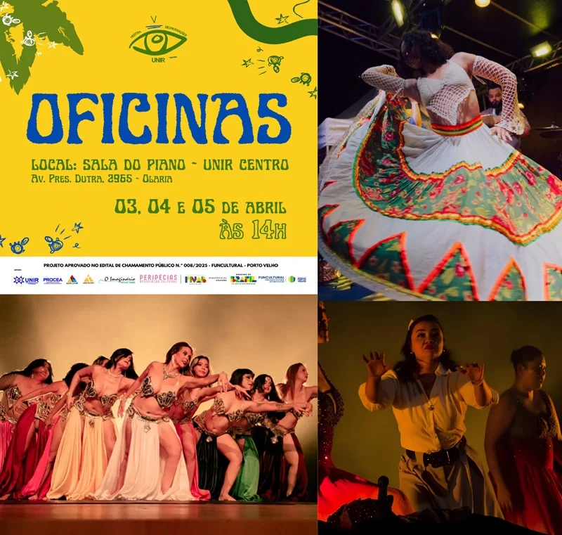 As atividades acontecem entre os dias 3 e 5 de abril, na Sala do Piano, na Unir Centro, sempre das 14h às 18h, reunindo propostas que transitam entre corpo, movimento e cultura popular. Serão 20 vagas para cada oficina. As inscrições serão realizadas por meio do formulário: https://acesse.one/kxiaexc.